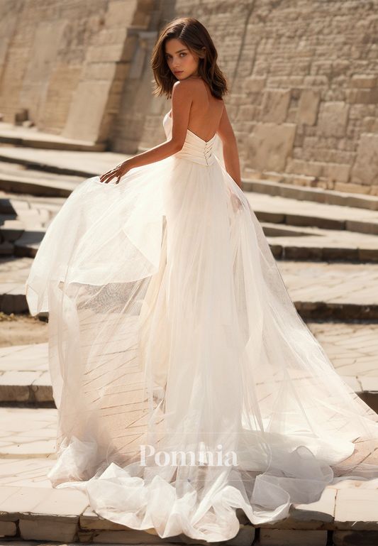 A-Line Sweetheart Lace Corset Tulle Appliques Sweep Train Beach Wedding Dress