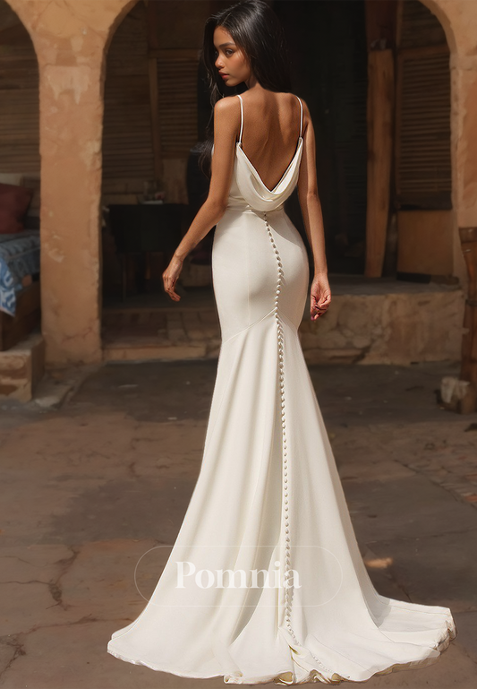 Simple Spaghetti Straps Sleeveless Scoop Backless Sweep Train Mermaid Wedding Dress