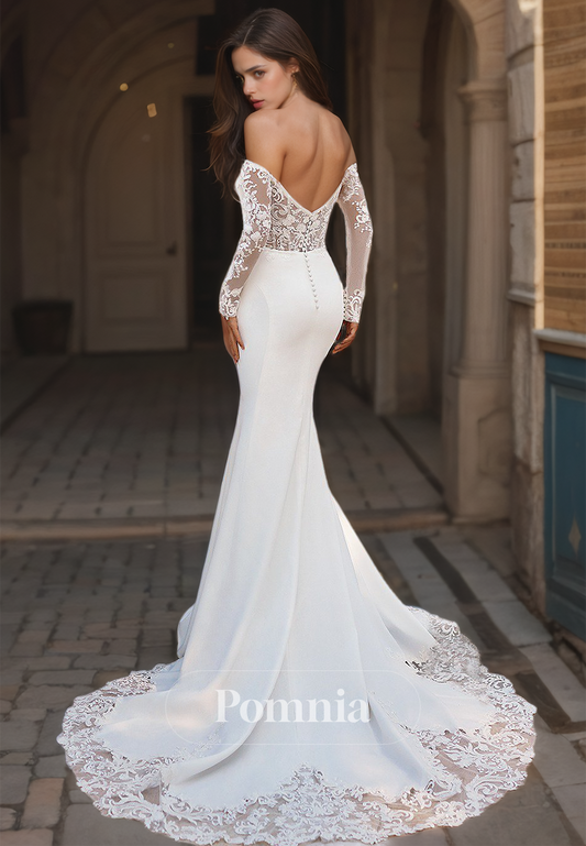 Modern Off-Shoulder Long Sleeves Backless Sweep Train Mermaid Wedding Dress