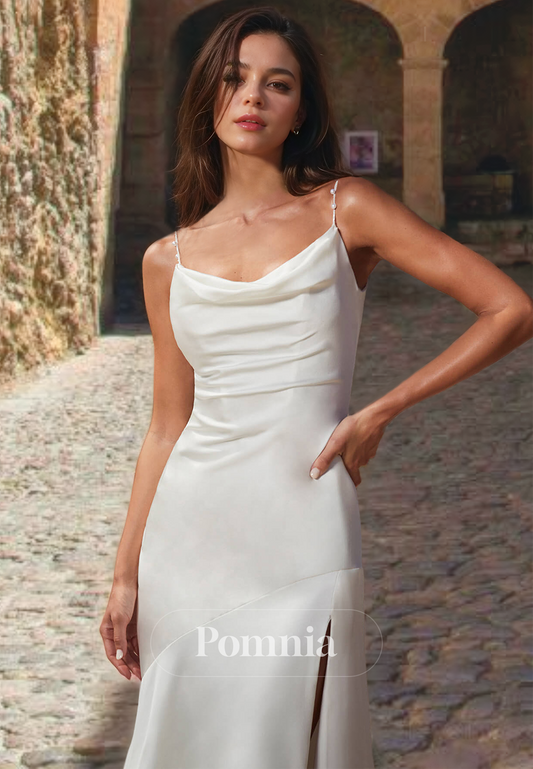 Elegant A-Line Spaghetti Straps Empire-Waist Sweep Train Satin Wedding Dress