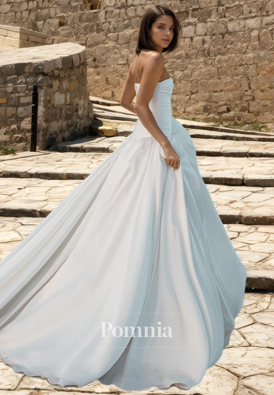 A-Line Empire-Waist Strapless Satin Pleated Long Beach Wedding Dress
