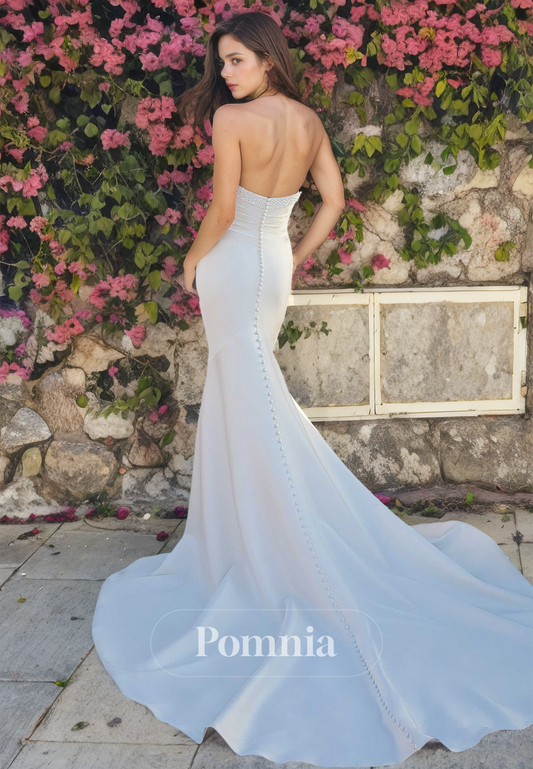 P3002 - Classic Strapless Sweetheart High Slit Satin Bridal Beach Wedding Dress