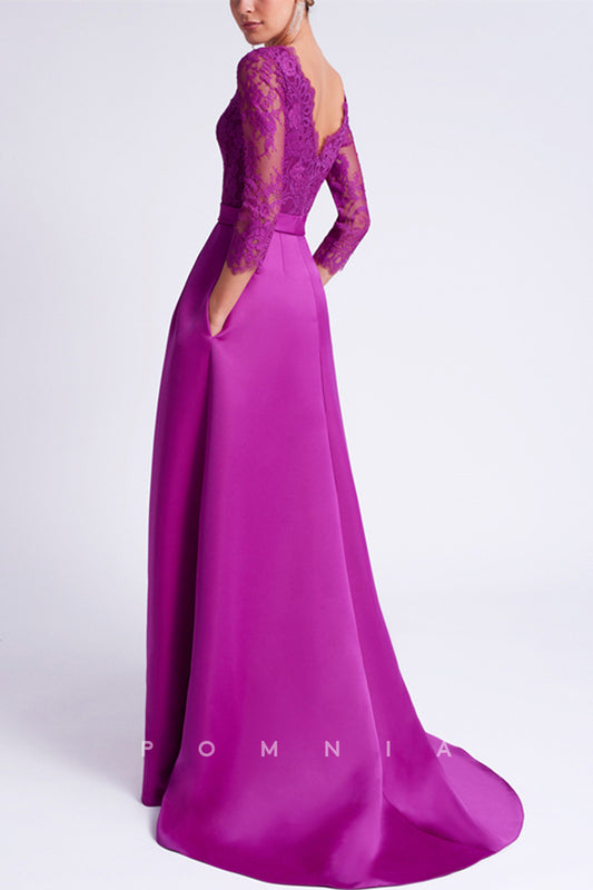 P9019 - A-Line Scoop Long Sleeves Empire-Waist Satin Long Mother of the Bride Dress with Pockets