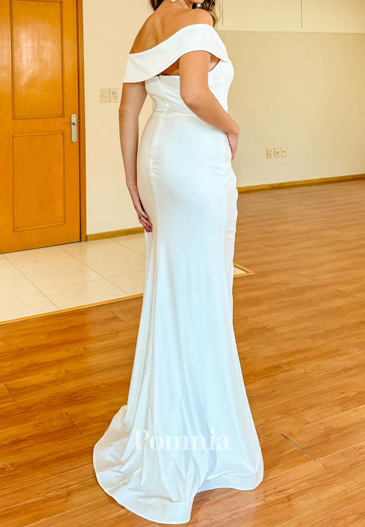 Simple Off-Shoulder Sleeveless Slit Sheath Wedding Dress