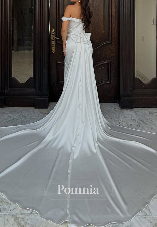 Sheath Off-Shoulder Sleeveless Slit Satin Wedding Dress
