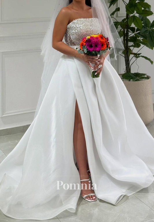 Charming A-Line Sleeveless Strapless Slit Wedding Dress