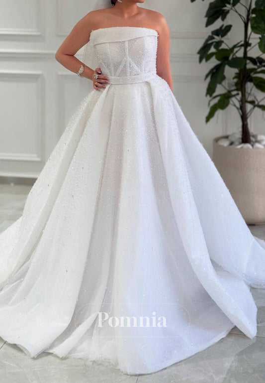 Simple A-Line Strapless Sleeveless Sequins Wedding Dress