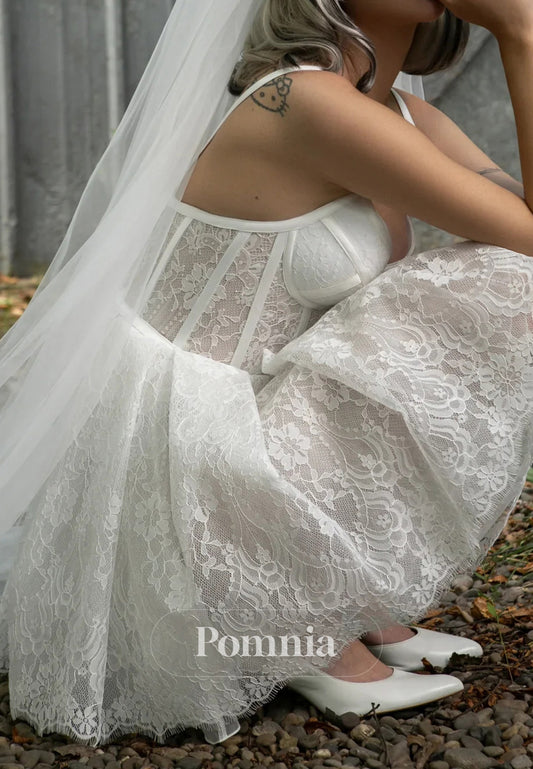 A-Line Spaghetti Straps Sweetheart Corset Tulle Short Wedding Dress