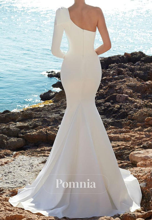 One Shoulder Long Sleeves Slit Mermaid Wedding Dress