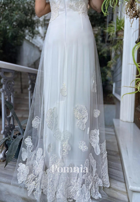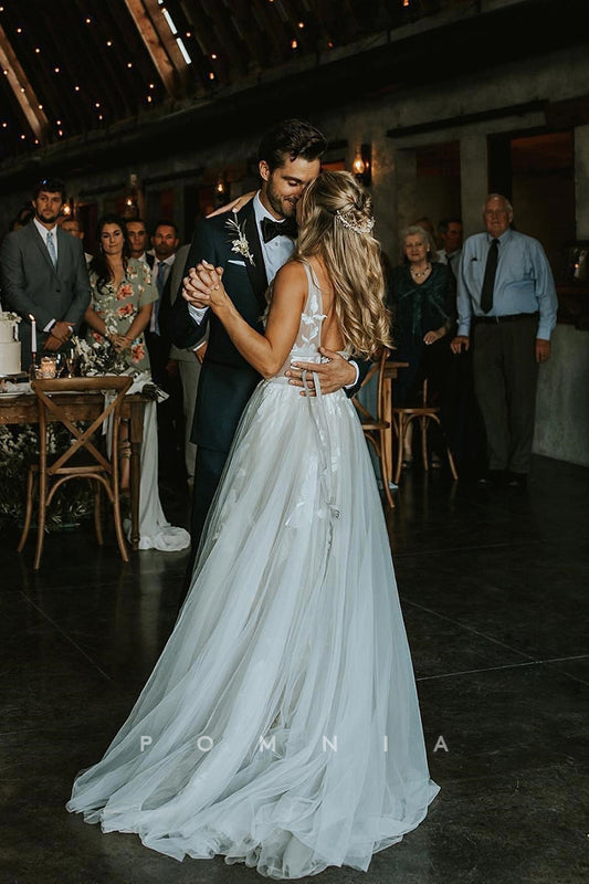 P3030 - A-Line Straps V-Neck Appliques Sleeveless Bohomian Wedding Dress