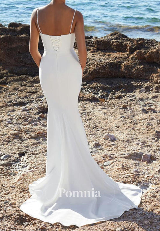 A-Line Spaghetti Straps Square Slit Sheath Wedding Dress