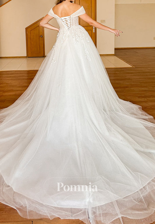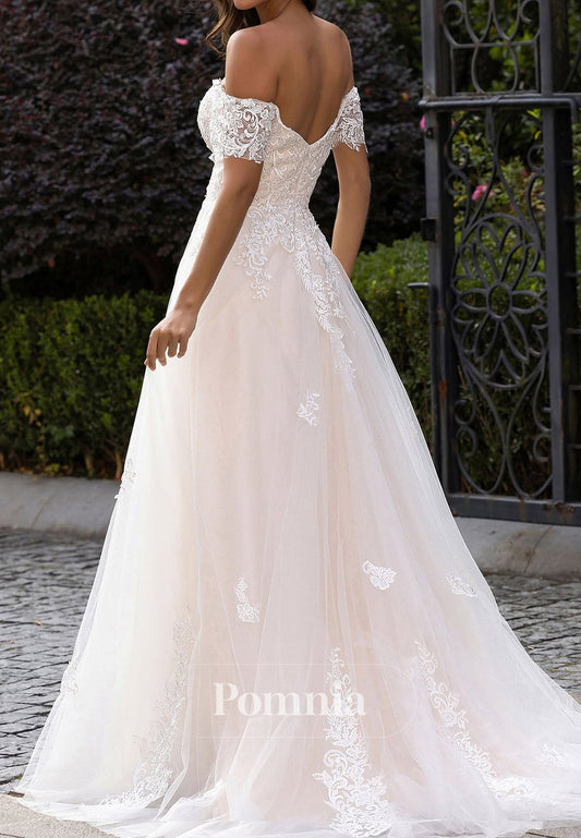 Charming A-Line Cap Sleeves Off-Shoulder Apppliques Wedding Dress