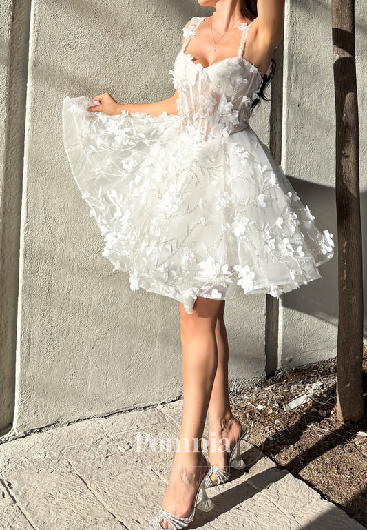 A-Line Spaghetti Straps Sweetheart Corset Short Wedding Dress
