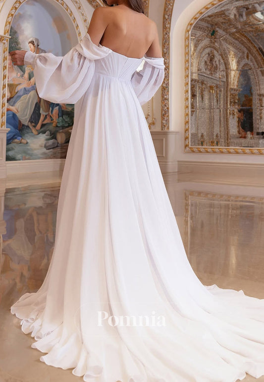 Long Sleeves Sweetheart Slit Sweep Train Wedding Dress