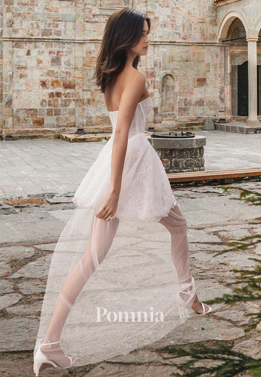 A-Line Off-Shoulder Strapless Pleated Floral Apliques Beach Lace Wedding Dress
