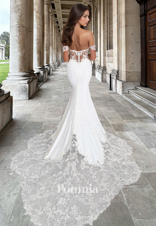 Off-Shoulder Long Sleeves Lace Appliques Mermaid Wedding Dress