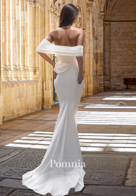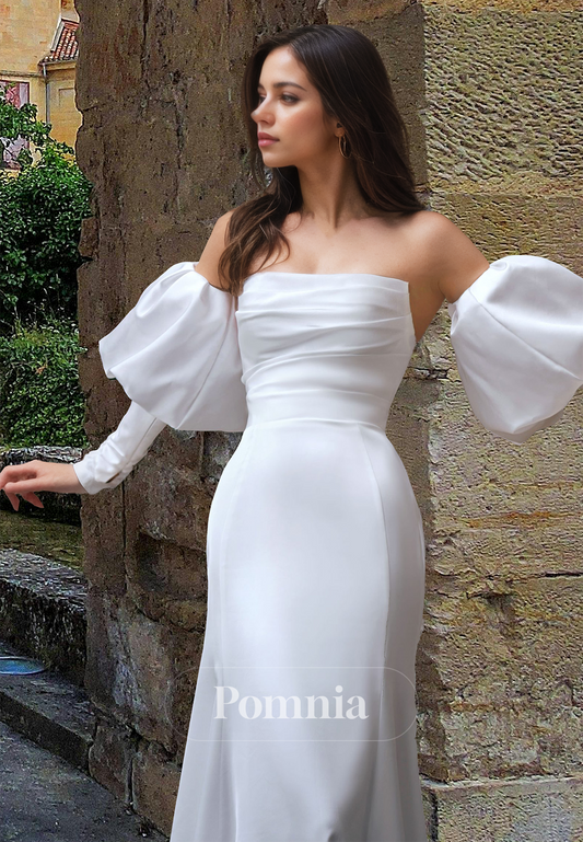 Mermaid Off-Shoulder Long Sleeves Sweep Train Backless Satin Wedding Dress