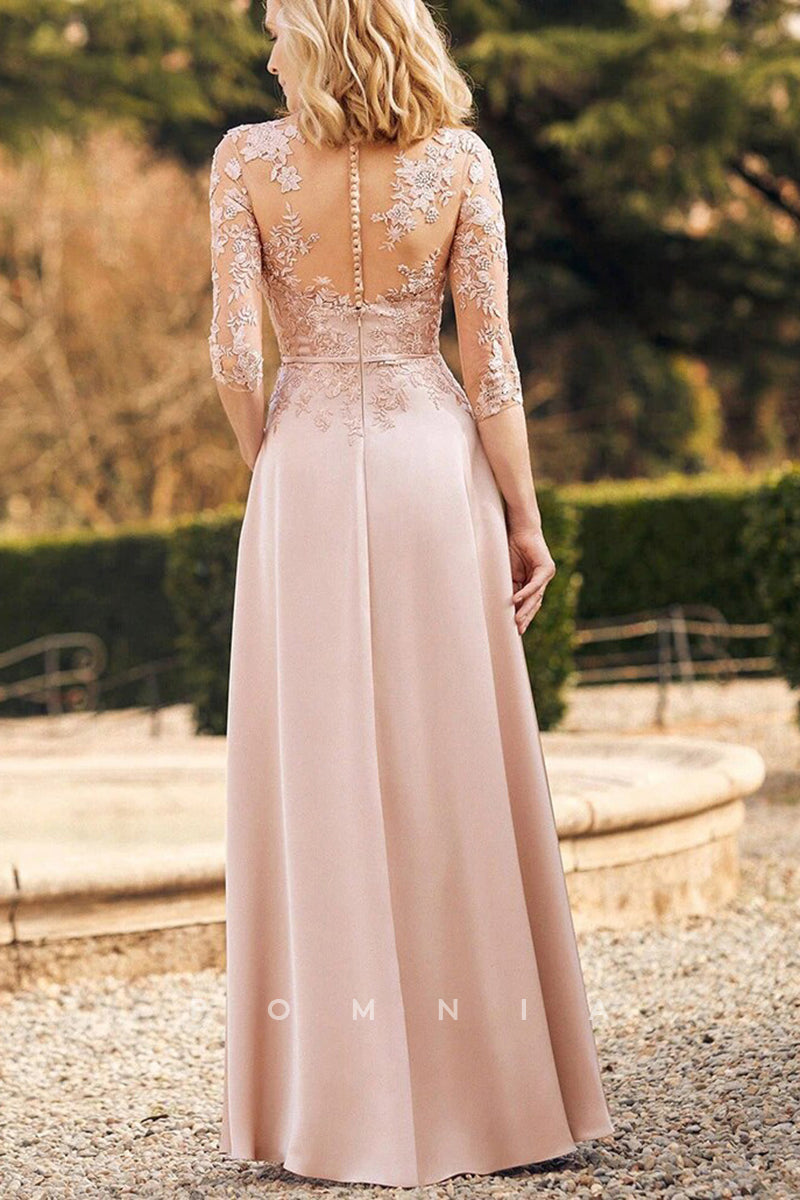 P9014 - A-Line Long Sleeves Appliques Satin Long with Pockets Mother of the Bride Dress