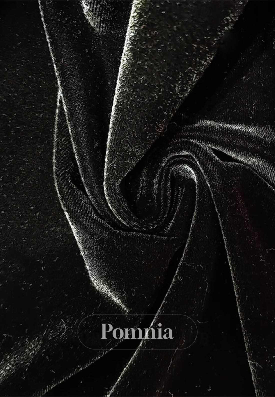 This luxurious velvet evening dress features long sleeves and a softly scooped neckline that frame the shoulders beautifully. Elegant ruching throughout the silhouette adds textural depth and creates a flattering, sculpted effect on the body. The sumptuous velvet fabric drapes richly, delivering a sense of opulence and refined taste. Perfect for formal dinners, upscale galas, and winter celebrations, this dress combines tactile luxury with sophisticated styling for an unforgettable evening presence.