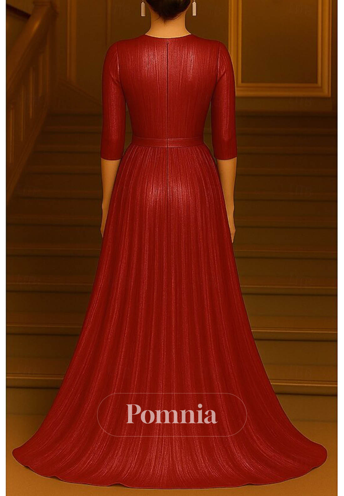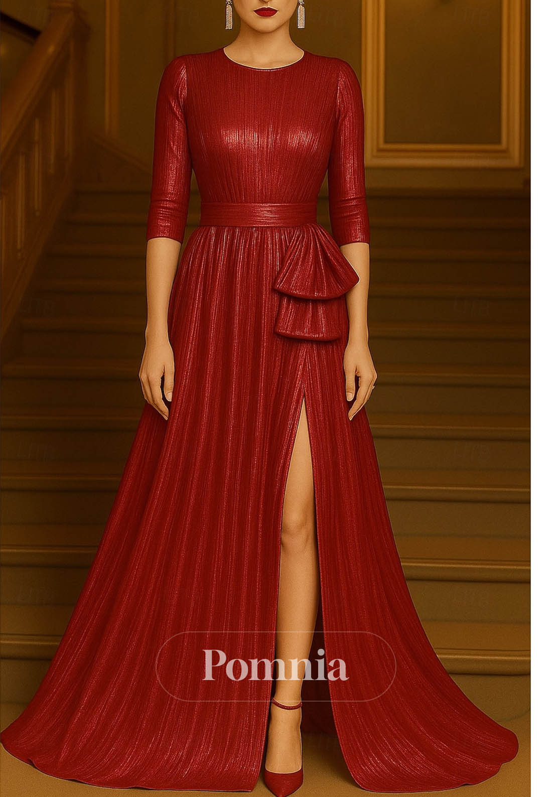 Crew Neck Formal Wedding Lurex Fabric with Glitter Pleats