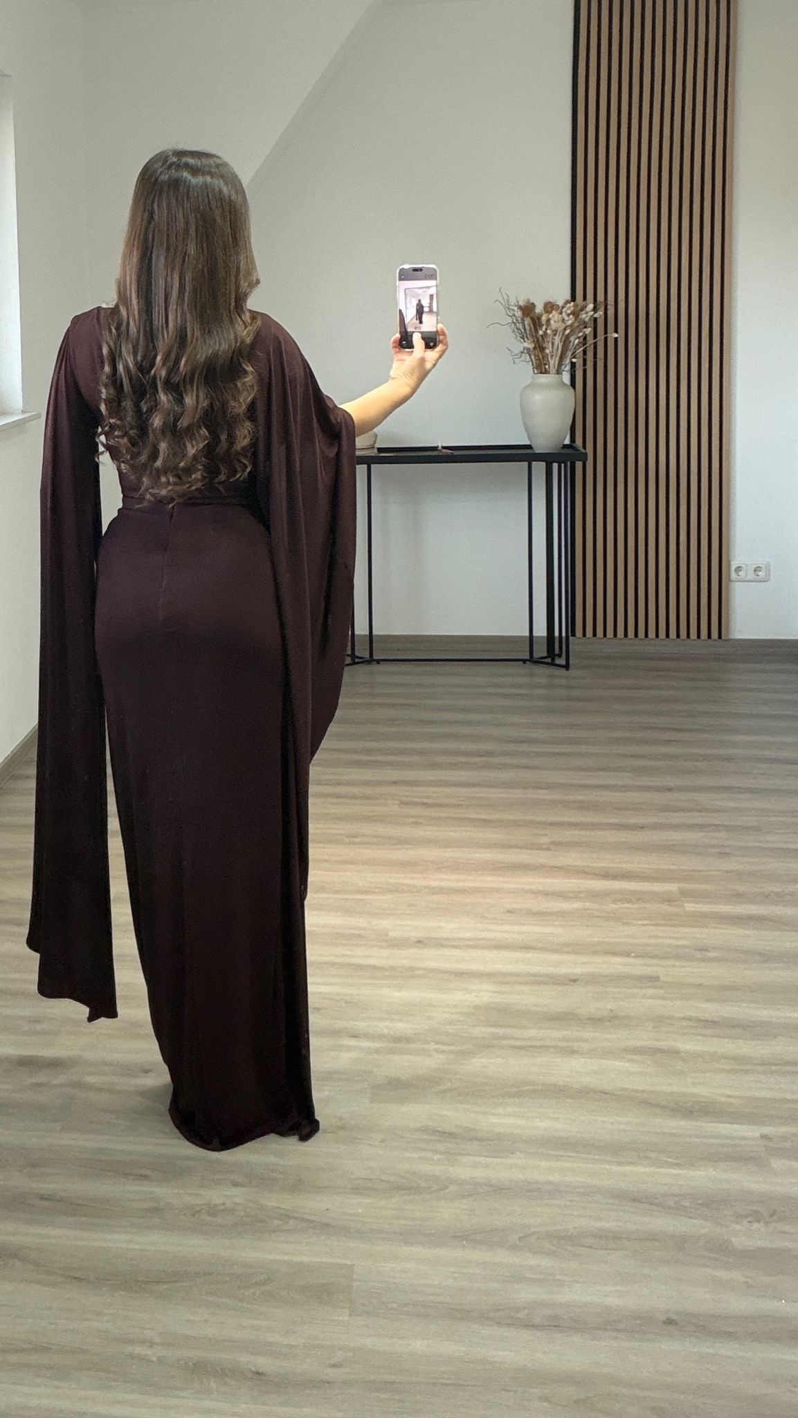 This stunning trumpet gown showcases a dramatic silhouette that hugs the body elegantly before flaring at the hem for a show-stopping effect. The floor-length design creates an impressive presence, making it an exceptional choice for prom, formal galas, and black-tie events. The fitted bodice provides structure and definition while the flowing skirt allows for graceful movement. Crafted to deliver confidence and sophistication, this gown transforms any special occasion into an unforgettable moment.